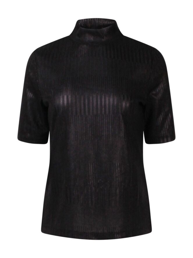Fancy top met een metallic coating en turtleneck. Dit shirt draag je eenvoudig onder een vest en geeft je look de finishing touch! Ook ontzettend leuk om veelvuldig te dragen in de aankomende feestmaand.