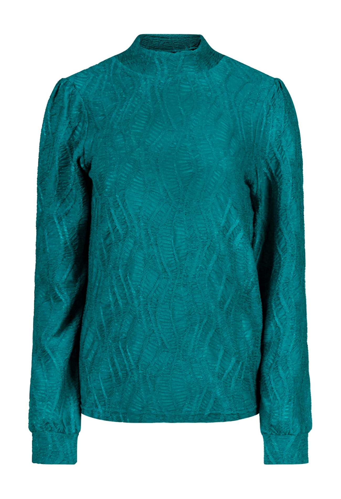 Fraaie top met een turtleneck die jou lekker warm houdt! De reliefstof van deze top is wel echt bijzonder met een golvend patroon en 4 way stretch!