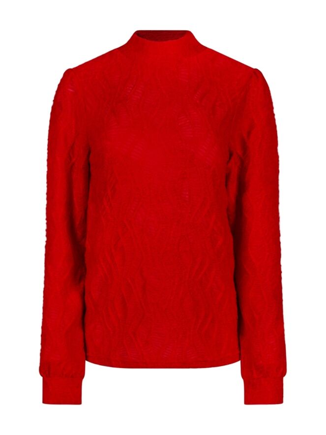 Fraaie top met een turtleneck die jou lekker warm houdt! De reliefstof van deze top is wel echt bijzonder met een golvend patroon en 4 way stretch!