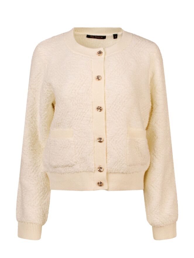 Dit zachte vest heeft een teddy look. Sluit met sierlijke goudkleurige knopen en heeft twee zakjes voorop. Heerlijk vestje om te dragen op je favoriete spijkerbroek of jurk of rok!