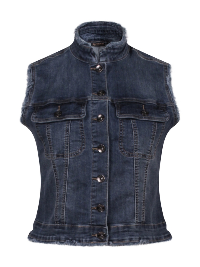 Dit gilet voor dames is gemaakt van fijne, zachte stretch denim voor comfortabel dragen. Het heeft klepzakken, een gerafelde afwerking en metalen knopen voor een stoere, casual look. Perfect om over een blouse of top te dragen als finishing touch van je outfit.