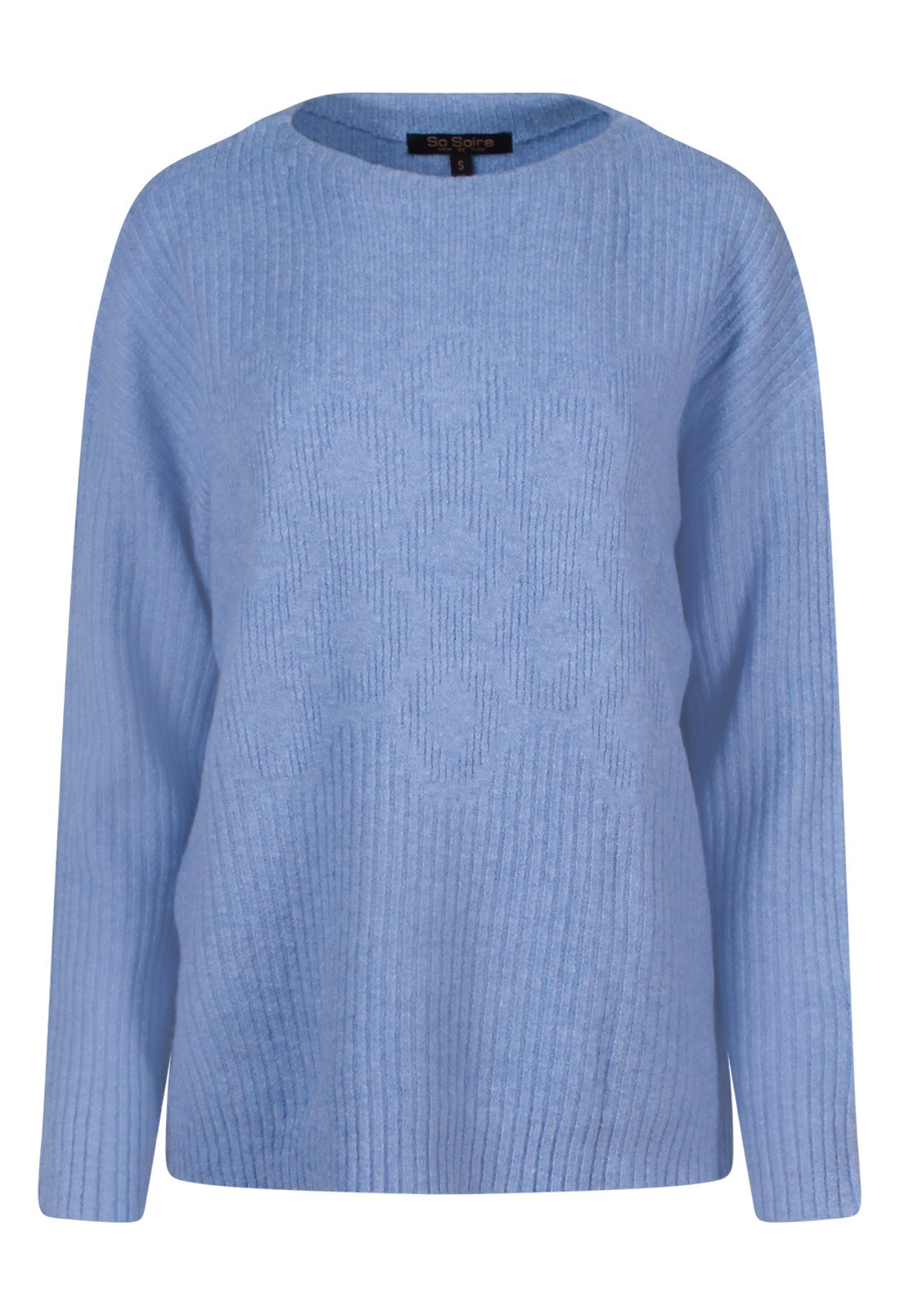 Heerlijke zachte dunne trui met sierlijk rib kabelpatroon erin verwerkt. Leuk te dragen op een denimrok of broek!