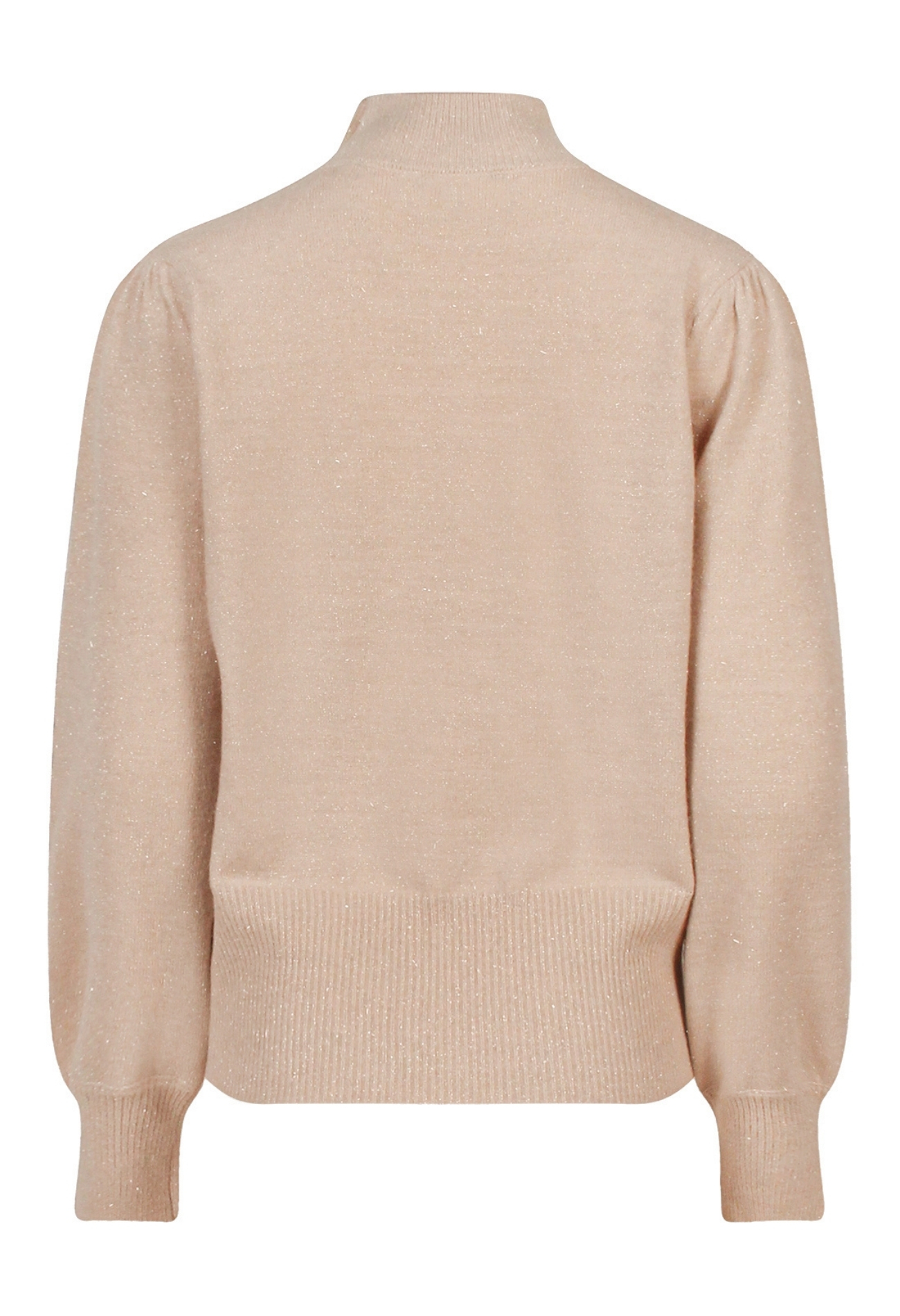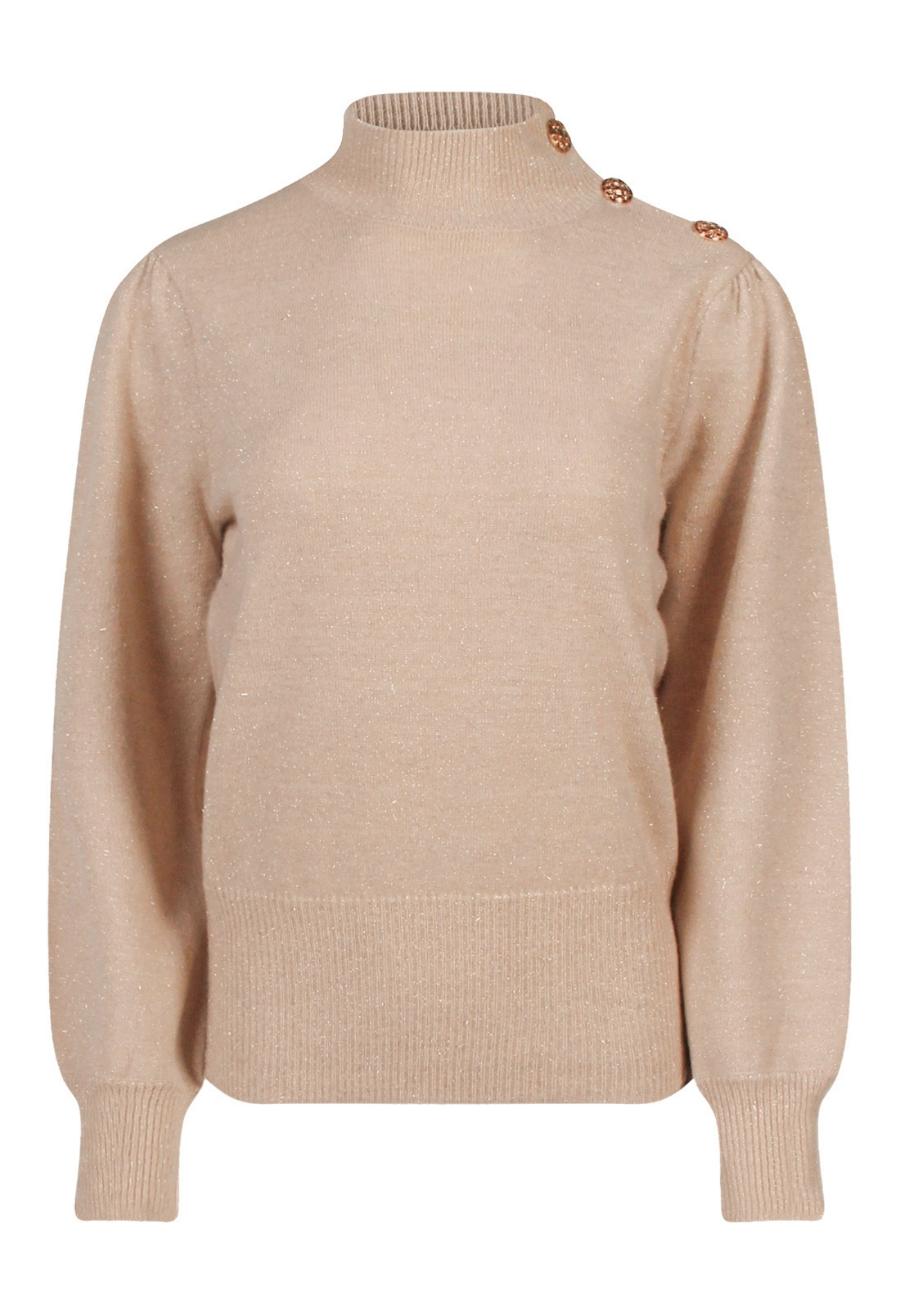 Prachtige trui met een opstaande kraag met sierlijke knopen. Door het breisel van deze trui zit een glitterdraad geweven. Heerlijk tijdens kouder weer en misstaat ook zeker niet tijdens de feestdagen!