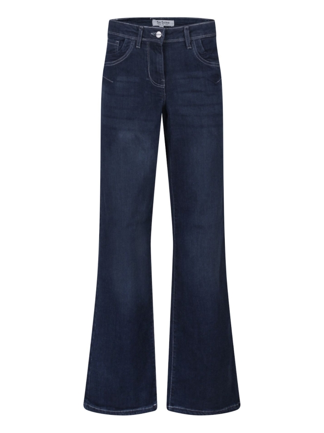 Deze stretch denim van So Soire is een 5 pocket model met rechte broekspijp.