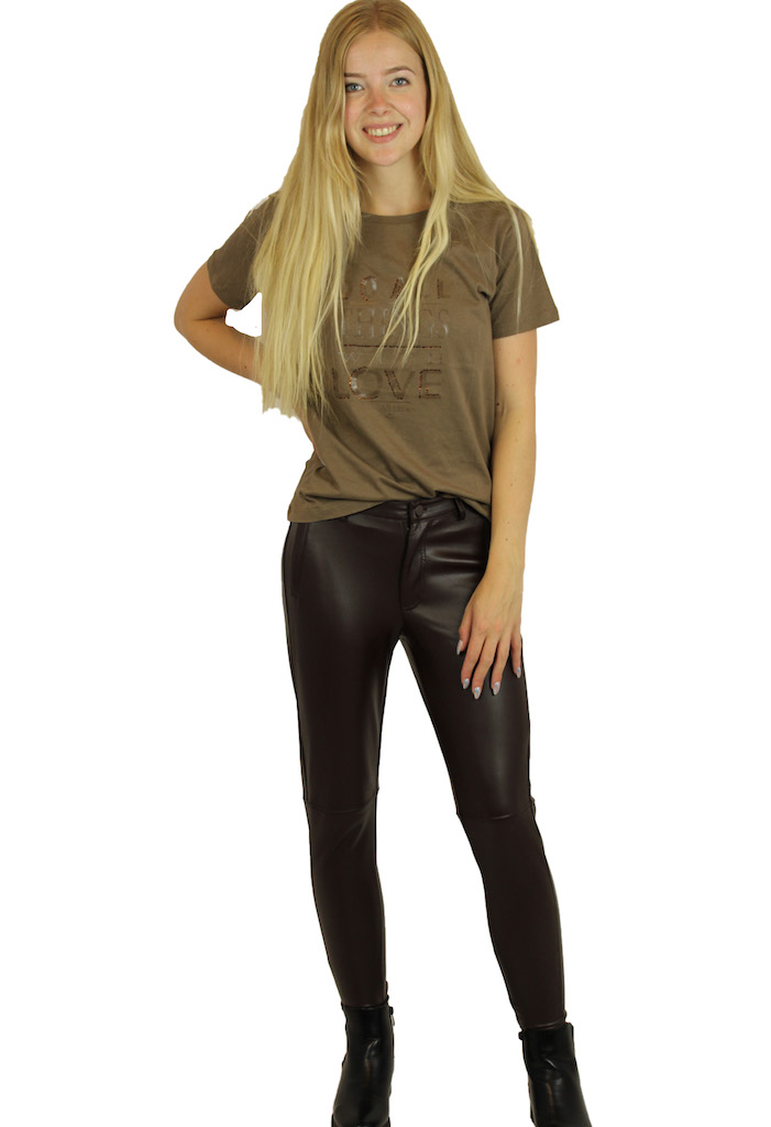 PU leren broek van So Soire. De broek is van nep leren stof en heeft nep zakken. De broek heeft een skinny fit. Valt op maat. Materiaal: 75% polyester, 22% polyurethane, 3% elasthan, Wassen op 30 graden, niet bleken, niet in de droger, kan gestreken worden.