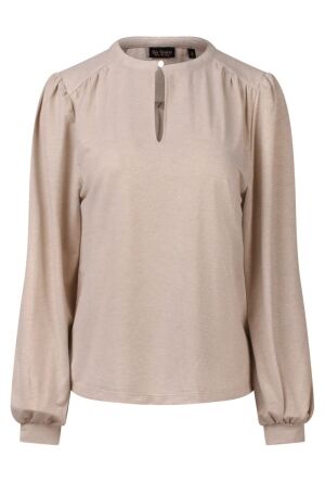 Deze dames top met lange mouwen is gemaakt van zachte velours en heeft een marmerdessin. Voorzien van een col voor extra warmte en een stijlvolle uitstraling.