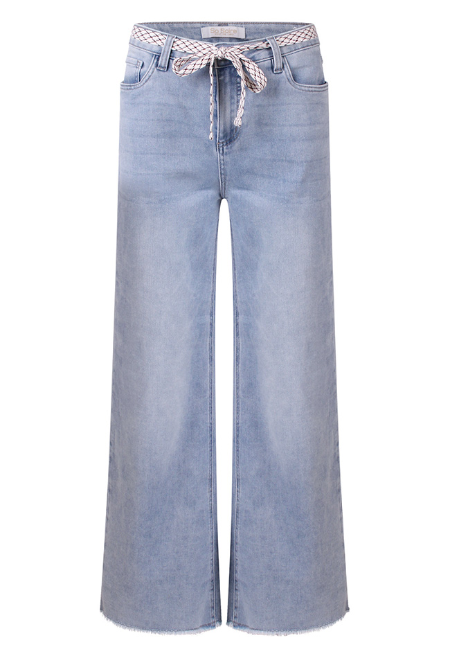 Let op, Lengtemaat 31! Prachtige zomerse jeans met wijde pijp en rafels onderaan. 5 Pockets en geleverd met een mooie strikceintuur!