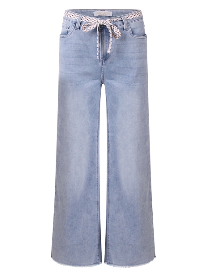 Let op, Lengtemaat 33! Prachtige zomerse jeans met wijde pijp en rafels onderaan. 5 Pockets en geleverd met een mooie strikceintuur!