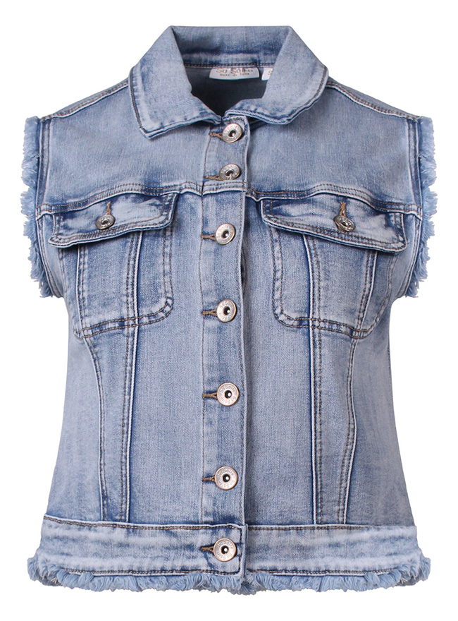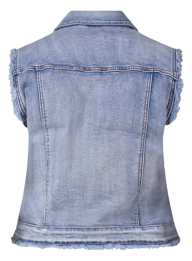 Dit denim dames gilet is een tijdloze toevoeging aan je garderobe met een trendy twist. De speelse rafels rond de armsgaten en in de taille geven het gilet een stoere, eigentijdse uitstraling. Dankzij het klassieke denim materiaal is het eenvoudig te combineren en geschikt voor elk seizoen. Draag het over een blouse, T-shirt of jurk voor een stijlvolle en veelzijdige look.