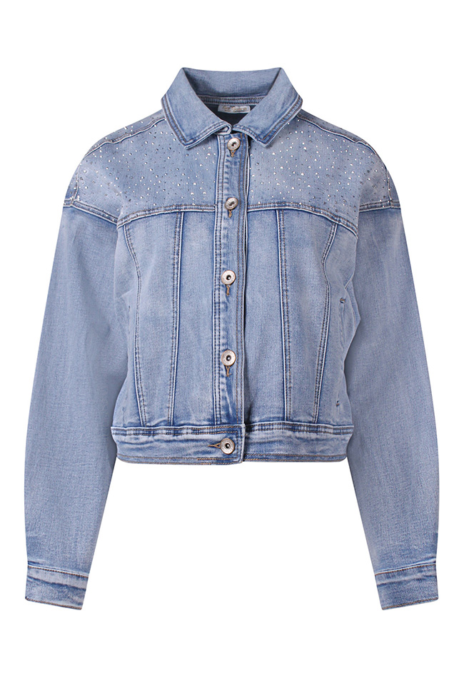 Dit stijlvolle dames spijkerjack combineert een klassieke look met een sprankelende twist dankzij de vele strass-steentjes. De praktische strookzakken voegen een subtiel detail toe, terwijl de boxy fit zorgt voor een iets wijder vallend silhouet voor extra comfort en een moderne uitstraling. Perfect om een casual outfit een glanzende, fashionable touch te geven.