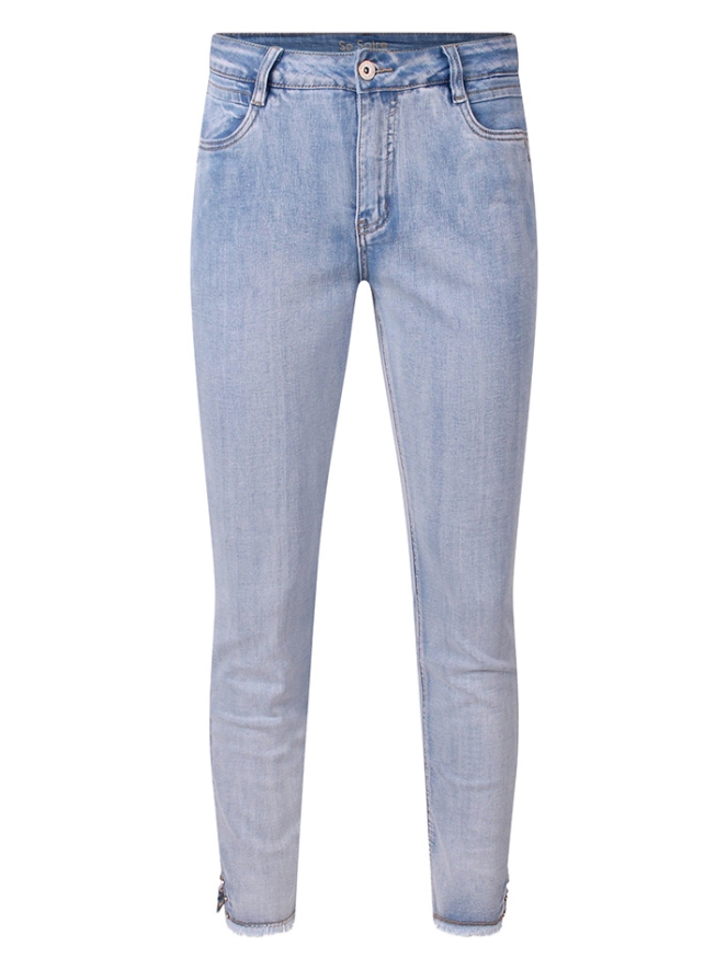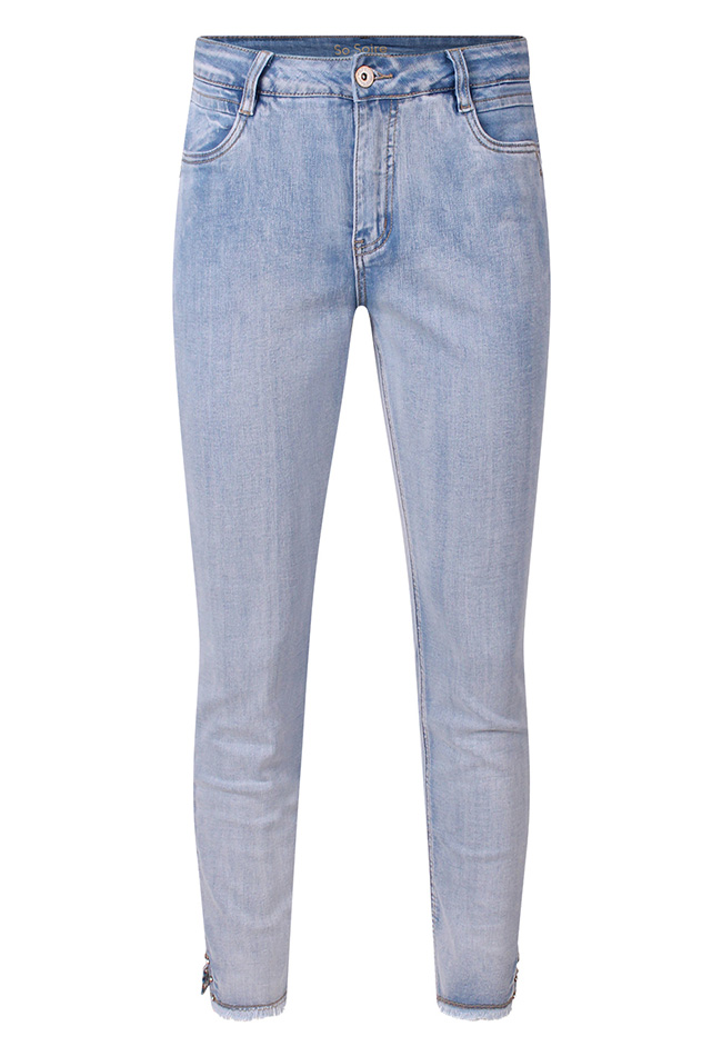 Deze jeans in een frisse, zomerse wassing is een echte blikvanger. Het splitje onderaan de pijpen is afgewerkt met subtiele strass stenen en een speelse rafelrand, wat zorgt voor een trendy en vrouwelijke uitstraling. Dankzij de comfortabele stof met veel stretch sluit de jeans perfect aan en biedt hij optimale bewegingsvrijheid. Een stijlvolle en comfortabele must-have voor het voorjaar en de zomer.