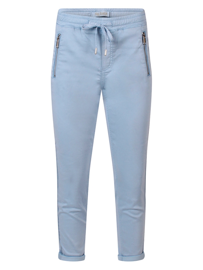 Deze lange broek van So Soire combineert het beste van twee werelden: de stoere uitstraling van denim met het comfort van een sweaterstof. De jog jeans is gemaakt van een unieke mix van sweat en denim, waardoor je geniet van een casual jeanslook met het draagcomfort van een joggingbroek. De binnenzijde is heerlijk zacht, wat zorgt voor extra comfort gedurende de hele dag. Dankzij de rechte pijp heeft de broek een tijdloze, flatterende pasvorm die makkelijk te combineren is met zowel sneakers als enkellaarsjes.