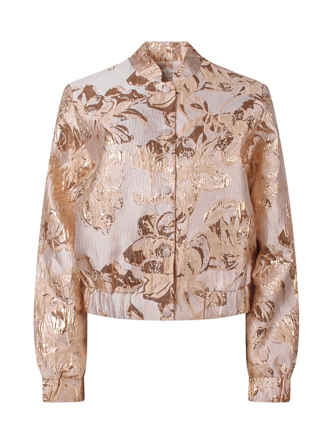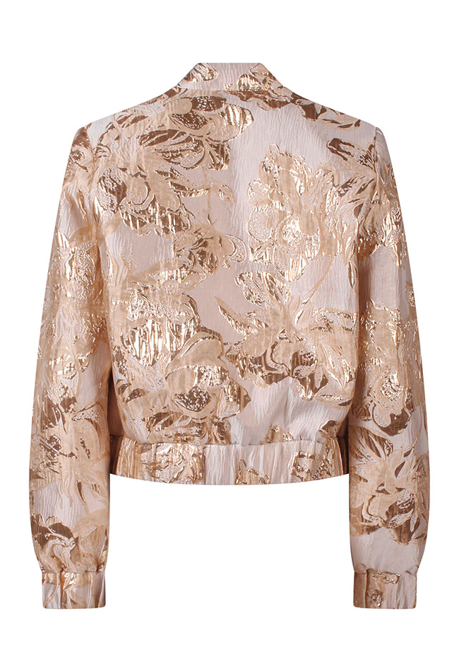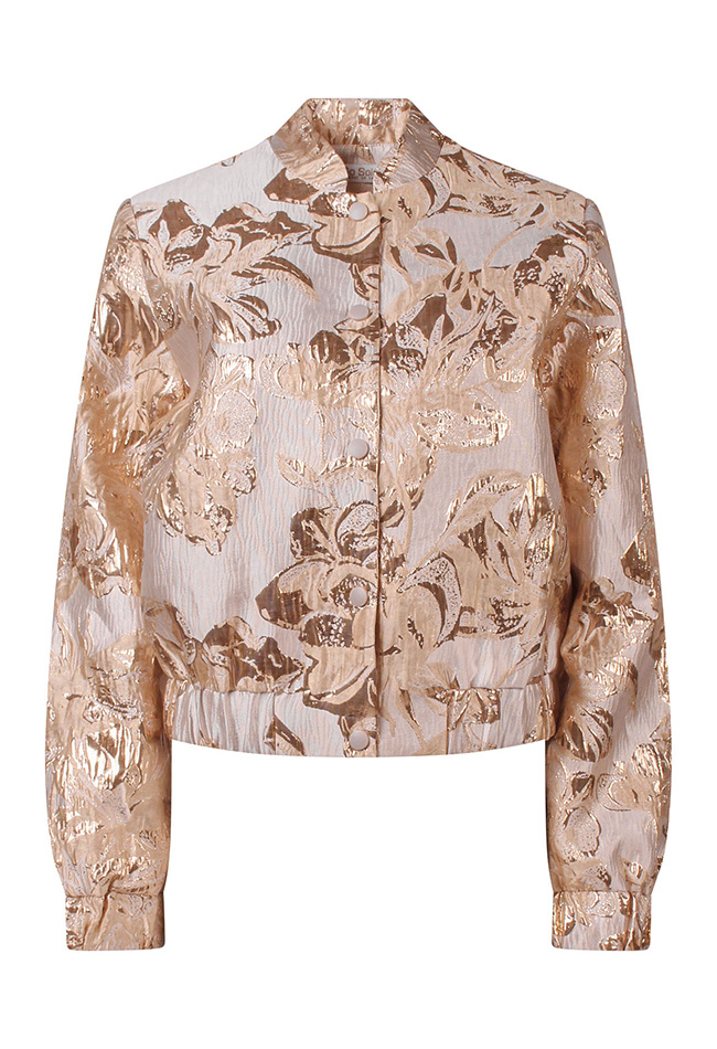 Deze brokaat bomber heeft een prachtig folie bloemdesign. Hij sluit met drukknopen maar is ook los leuk te dragen! Dit exemplaar is niet ontzettend dik en doet het dan ook goed als vestje! Blikvanger op en top!