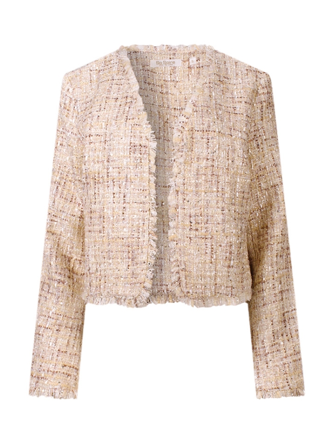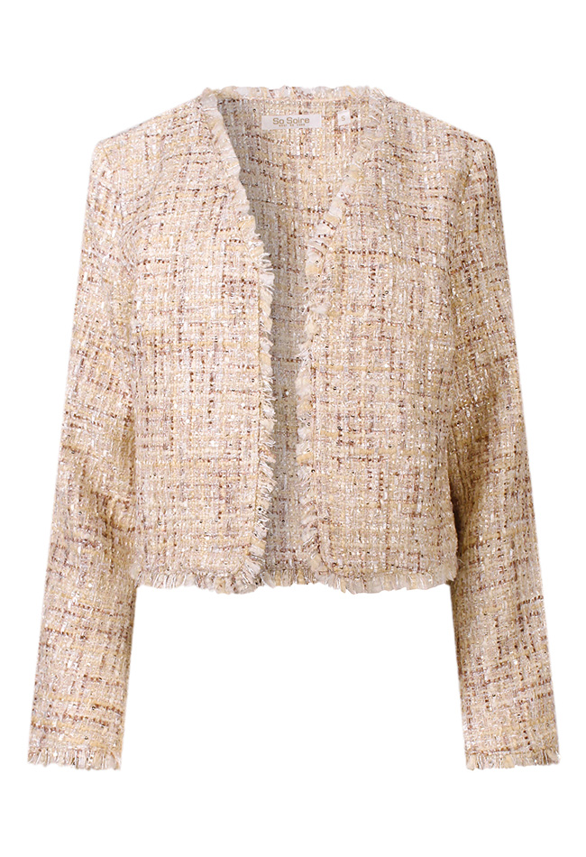 Prachtige boucle blazer met pailetten in de stof en vele rafel details. Deze blazer geeft je een elegante look. Een mooie pantalon maakt het plaatje helemaal af maar misstaat ook zeker niet op een mooie spijkerbroek. Zelfs Kate Middleton is gek op boucle blazers! Dan weet je het maar even ;-)