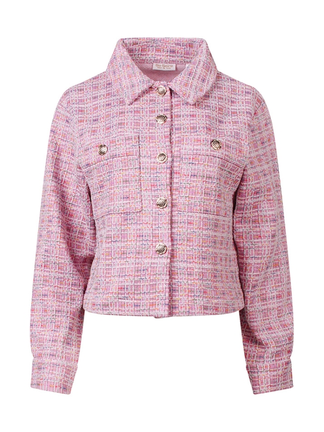 Mooie Jacquard blazer met een multi color motief in de stof. Deze blazer afgewerkt met goudkleurige knopen heeft 2 borstzakken en geeft je outfit een trendy klassieke twist. De stof valt soepel en daardoor draagt dit jasje ook erg comfortabel!