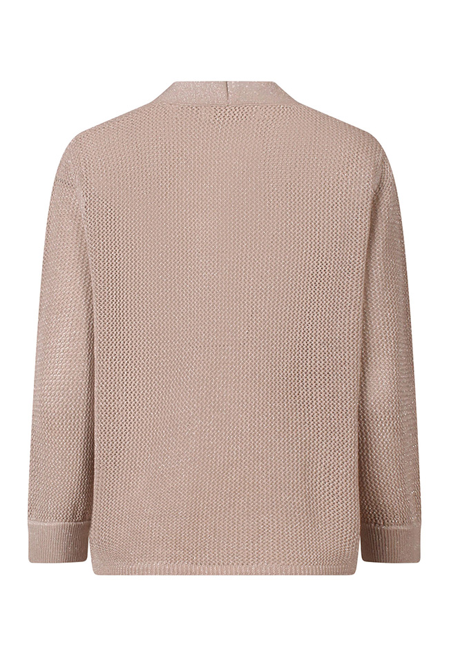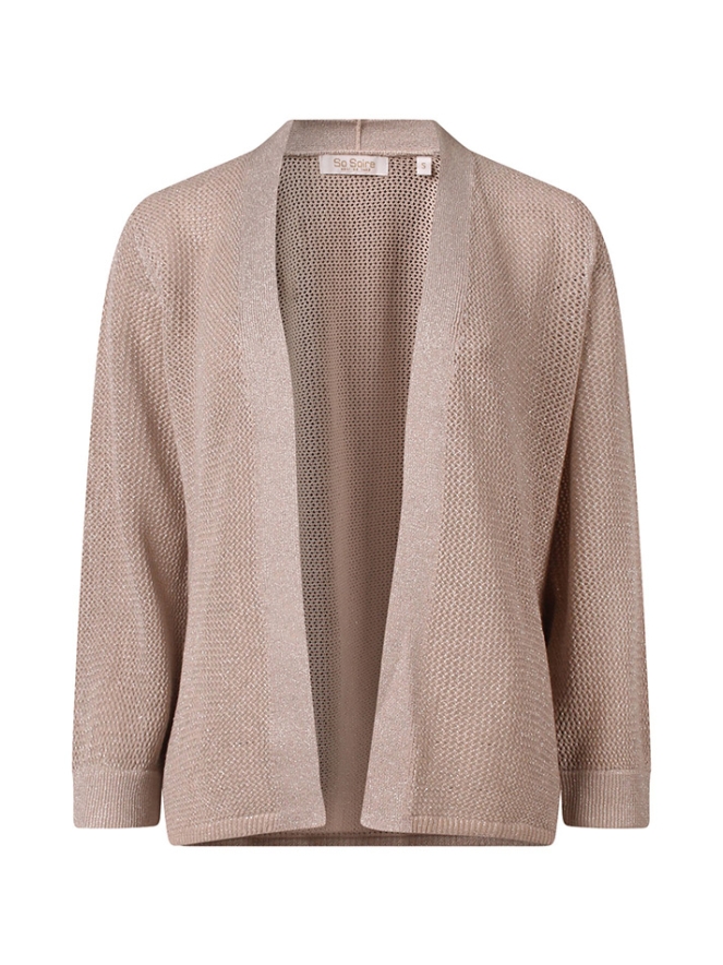 Voeg een subtiele sparkle toe aan je outfit met dit stijlvolle vestje van SoSoire. Het vestje is uitgevoerd in een verfijnd open breisel, wat zorgt voor een luchtige en elegante uitstraling. De lichte, ademende structuur maakt dit vest ideaal om te dragen over een top, blouse of jurk. Het opengewerkte patroon creëert een speels effect, terwijl de lurex accenten zorgen voor een vrouwelijke, chique touch.