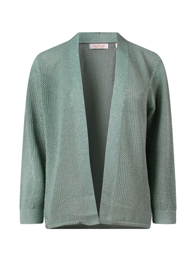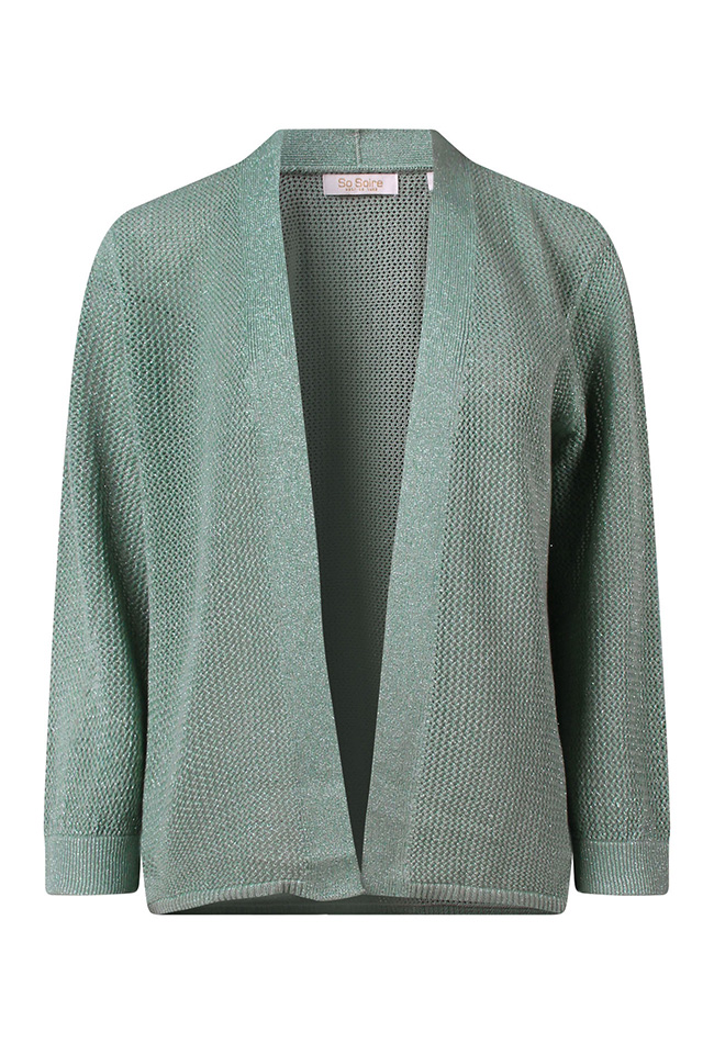 Voeg een subtiele sparkle toe aan je outfit met dit stijlvolle vestje van SoSoire. Het vestje is uitgevoerd in een verfijnd open breisel, wat zorgt voor een luchtige en elegante uitstraling. De lichte, ademende structuur maakt dit vest ideaal om te dragen over een top, blouse of jurk. Het opengewerkte patroon creëert een speels effect, terwijl de lurex accenten zorgen voor een vrouwelijke, chique touch.