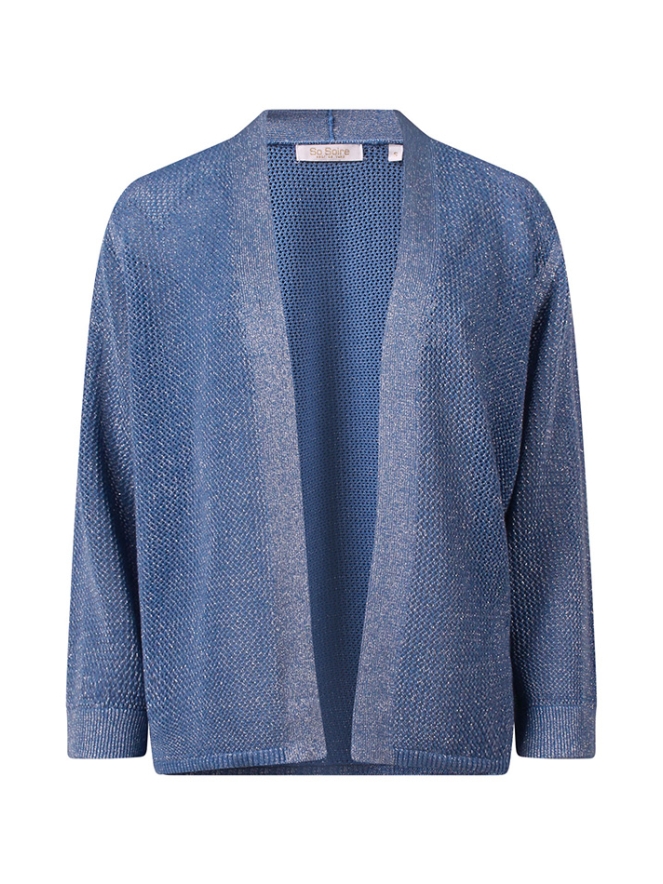 Voeg een subtiele sparkle toe aan je outfit met dit stijlvolle vestje van SoSoire. Het vestje is uitgevoerd in een verfijnd open breisel, wat zorgt voor een luchtige en elegante uitstraling. De lichte, ademende structuur maakt dit vest ideaal om te dragen over een top, blouse of jurk. Het opengewerkte patroon creëert een speels effect, terwijl de lurex accenten zorgen voor een vrouwelijke, chique touch.