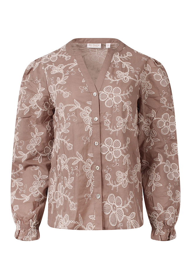 Deze blouse met prachtig borduursel en een mini pailettje zo hier en daar heeft een mooie V hals en luxueuze uitstraling. Hier mag je zeker in gezien worden!
