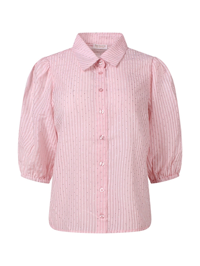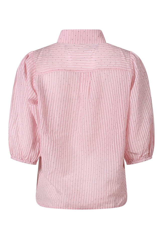 Shiny luchtig en dun blousje met mooi streeppatroon vol met bling bling strass stenen allover. De pofmouw maakt de blouse wat losser. Erg leuk te dragen onder een blazer of leuk vestje.