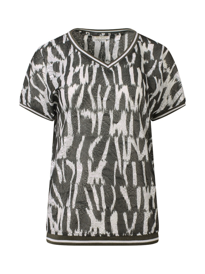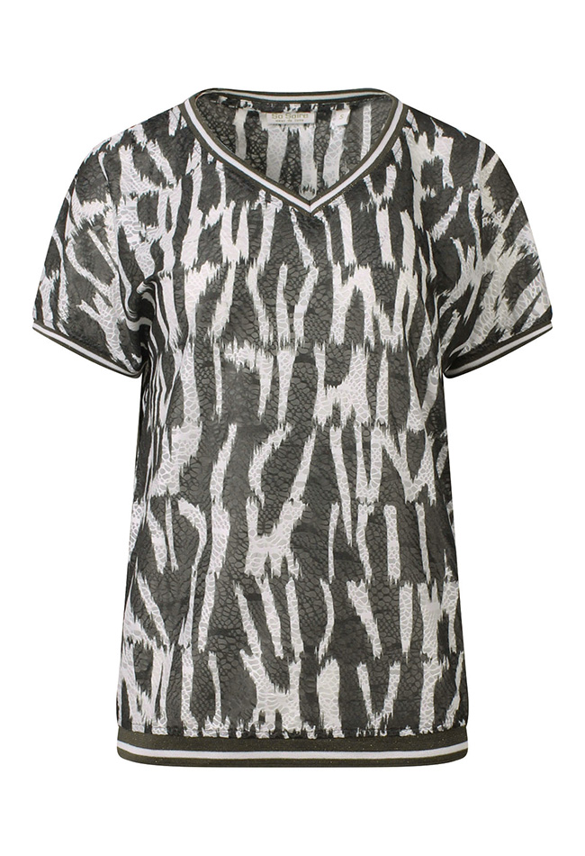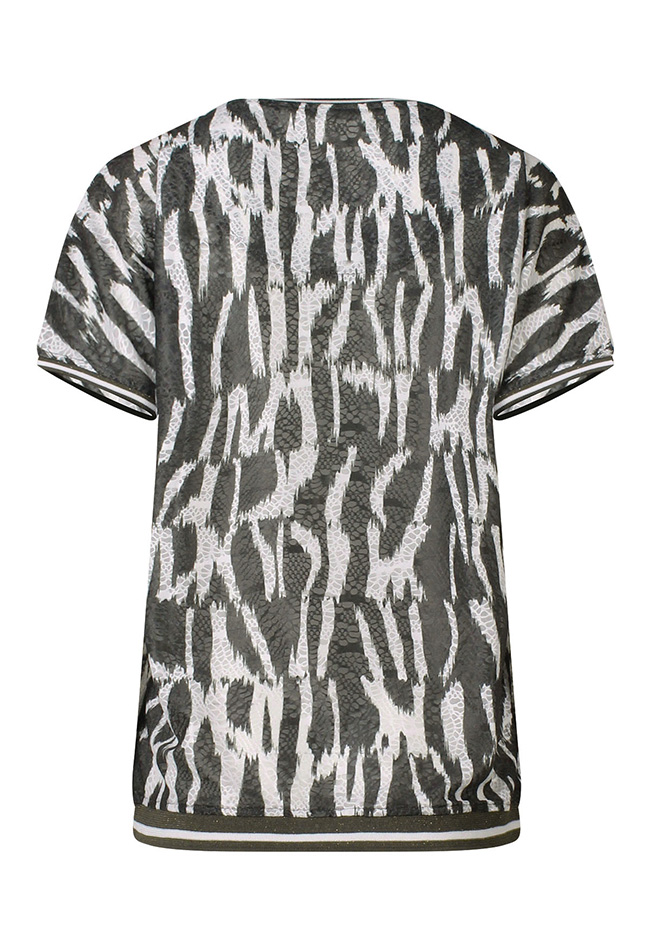 Breng je outfit tot leven met dit stijlvolle dames T-shirt! Het shirt is voorzien van een opvallende allover print die direct de aandacht trekt, ideaal voor wie van een speelse en trendy look houdt.