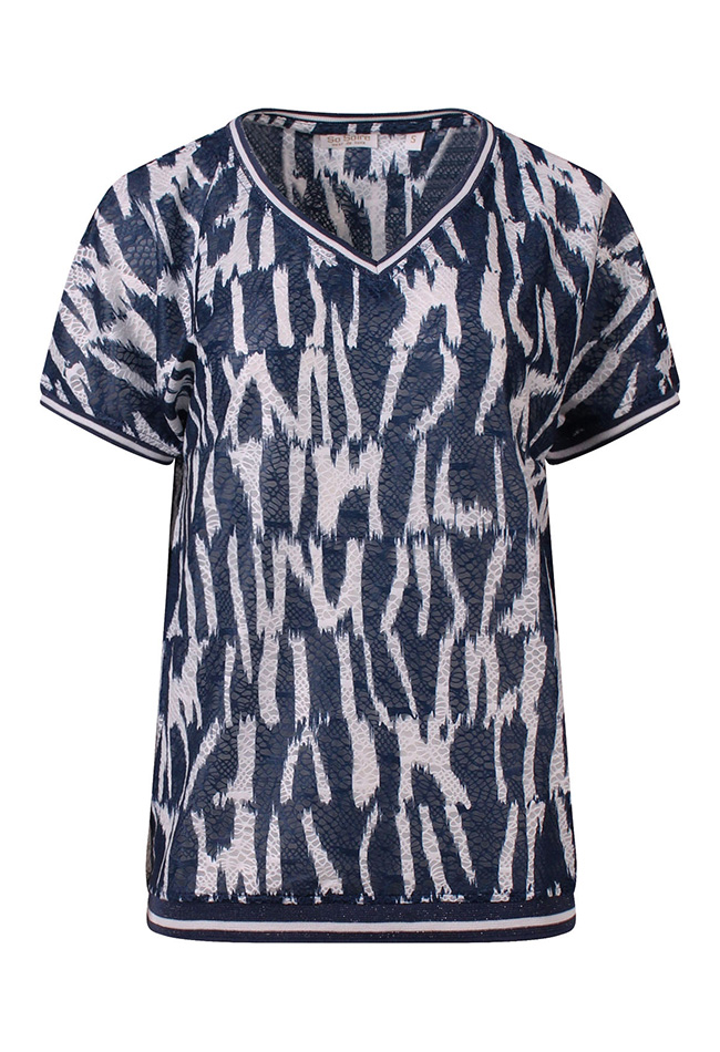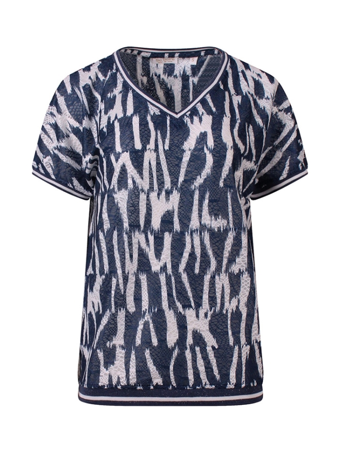 Breng je outfit tot leven met dit stijlvolle dames T-shirt! Het shirt is voorzien van een opvallende allover print die direct de aandacht trekt, ideaal voor wie van een speelse en trendy look houdt.