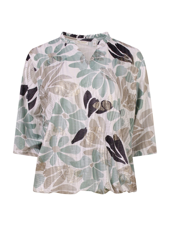 Deze luchtige top met 3/4 mouw is een echte must-have voor het seizoen. De top is uitgevoerd in een vrolijke zomerse bloemenprint die direct zorgt voor een frisse en vrouwelijke uitstraling. De elastische afwerking aan het uiteinde van de mouwen geeft een speels, subtiel pofeffect en zorgt tegelijkertijd voor extra draagcomfort. Dankzij het elastiek in de taille valt de top mooi bloezend en creëert het een flatterend silhouet.