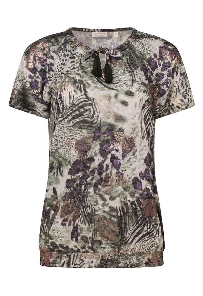 Breng een vleugje zomer in je garderobe met deze luchtige top met tropical bloemenprint. De elastische tailleband zorgt voor een comfortabele en flatterende pasvorm, terwijl de elegante V-hals met ruches een speels en vrouwelijk detail toevoegt. De korte mouwen maken dit item perfect voor warme dagen, zowel casual als chic te dragen. Ideaal te combineren met jeans, rokjes of shorts voor een vrolijke, zomerse look.