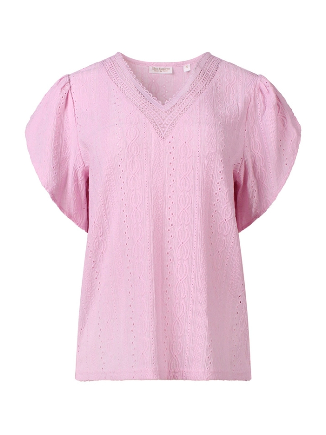 Ajour tops zijn helemaal hot. Deze top van ajour heeft een prachtige doorschijnende V hals en een mooie overslag mouw. Let op, top niet strijken.