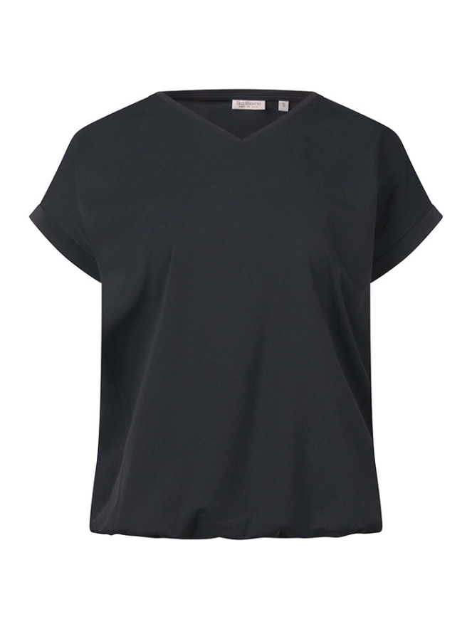 Comfortabel dames T-shirt van travelstof met een moderne en verzorgde uitstraling. De stof is licht, soepel en kreukvrij, ideaal voor elke dag. De omslagmouwen geven een casual en trendy detail, terwijl de elastische body zorgt voor een mooie, aansluitende pasvorm en extra draagcomfort. Perfect te combineren met een broek, rok of short voor een stijlvolle en praktische look.
