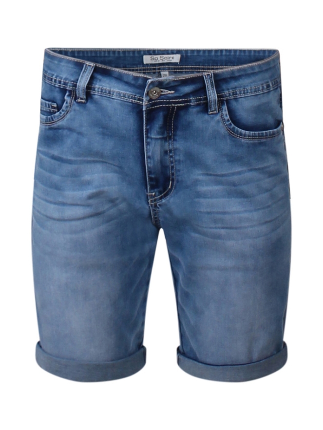 Deze denim stretch korte broek heeft een biesje over de zijkant van het been met een heel subtiel glitter draadje erdoor. Deze korte broek kan gedragen worden met omgeslagen pijpen maar ook rechtuit.