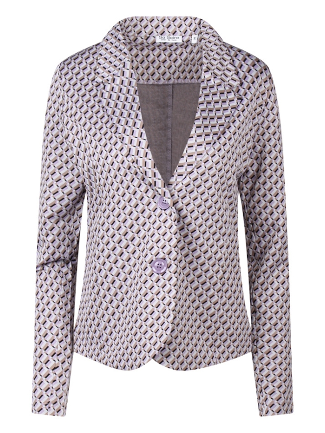 Deze blazer met grafisch design heeft een reverskraag en sluit met twee knopen. Een bijpassende pantalon broek is verkrijgbaar onder artikel nr. Z80416