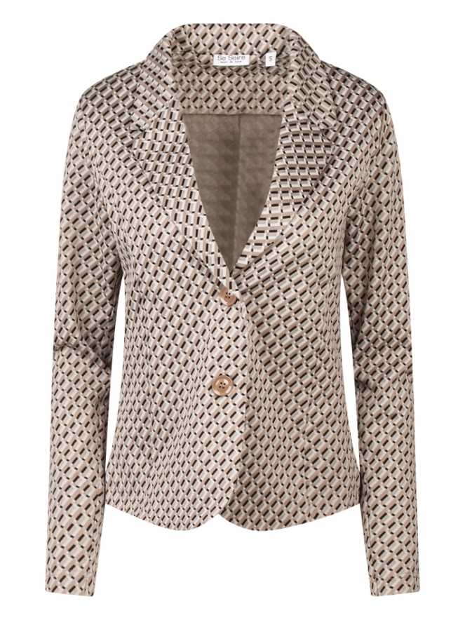 Deze blazer met grafisch design heeft een reverskraag en sluit met twee knopen. Een bijpassende pantalon broek is verkrijgbaar onder artikel nr. Z80416