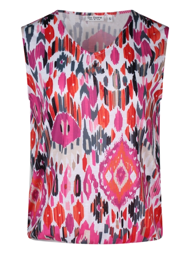 Deze singlet met V hals heeft een elastiek in de taille om het shirt iets te laten bollen.