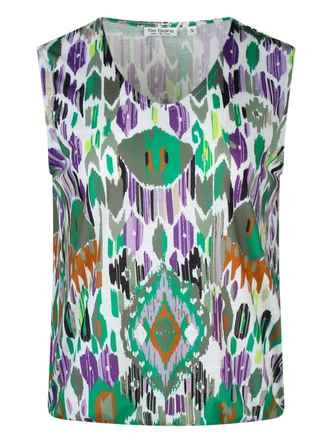 Deze singlet met V hals heeft een elastiek in de taille om het shirt iets te laten bollen.
