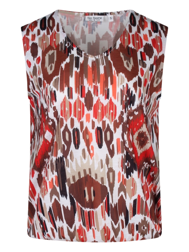 Deze singlet met V hals heeft een elastiek in de taille om het shirt iets te laten bollen.