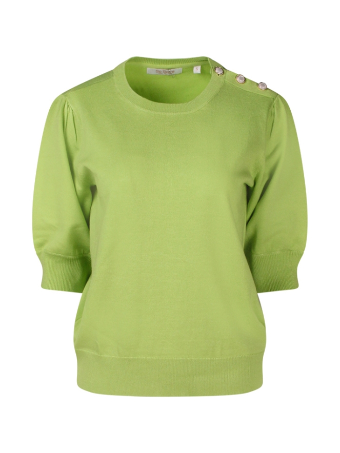 Fijne trui met korte pofmouw. Voor een nette afkleding is dit een musthave. Voor de ultieme zomerse vacay look draag je er een effen gekleurde broek, lang, kort of driekwart onder met witte schoen. Wij zeggen doen!