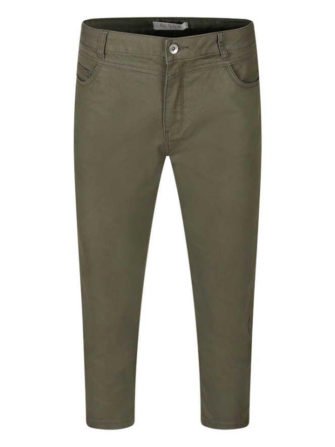 Deze driekwart damesbroek van So Soire uit de zomercollectie is gemaakt van comfortabele twill met een flatterende 23 inch lengte. Het effen ontwerp heeft een klassieke 5-pocket stijl en een rits- en knoopsluiting. Een subtiel splitje aan de pijpen voegt een elegant detail toe, terwijl de stretchstof zorgt voor een comfortabele en vrouwelijke pasvorm. Ideaal voor dagelijks gebruik en perfect voor op de fiets.