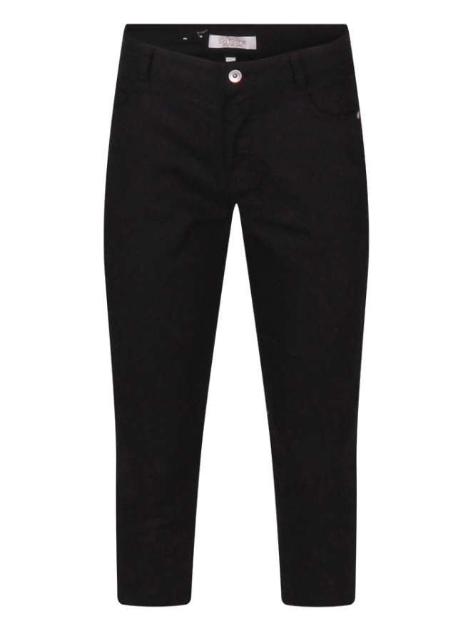 Deze driekwart damesbroek van So Soire uit de zomercollectie is gemaakt van comfortabele twill met een flatterende 23 inch lengte. Het effen ontwerp heeft een klassieke 5-pocket stijl en een rits- en knoopsluiting. Een subtiel splitje aan de pijpen voegt een elegant detail toe, terwijl de stretchstof zorgt voor een comfortabele en vrouwelijke pasvorm. Ideaal voor dagelijks gebruik en perfect voor op de fiets.