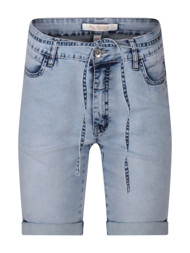 Deze denim short van So Soire uit de zomercollectie is een stijlvolle must-have voor warme dagen. Gemaakt van een comfortabele stretchstofmix, met een flatterende pasvorm en een speels denim koordje rond de taille, gedragen door de riemlussen. De subtiele studs bij de zakken geven de short een stoer en trendy accent. Afgewerkt met een klassieke rits- en knoopsluiting, perfect voor een casual maar vrouwelijke zomerlook.