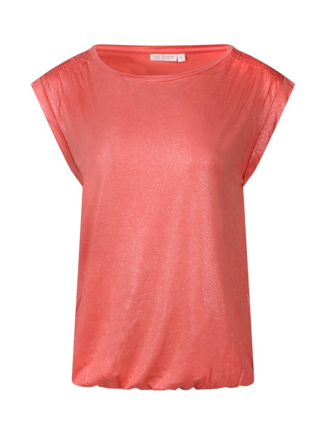 Shine baby shine! Fijn T-shirtje met een lichte schittering in de stof met een vaste mouwomslag. In de taille zit een elastiek zodat het shirt mooi bolt en dus niet nauw om zit. Door de effen kleur multi inzetbaar op shorts, broeken en rokken! Musthave!