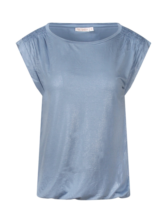 Shine baby shine! Fijn T-shirtje met een lichte schittering in de stof met een vaste mouwomslag. In de taille zit een elastiek zodat het shirt mooi bolt en dus niet nauw om zit. Door de effen kleur multi inzetbaar op shorts, broeken en rokken! Musthave!
