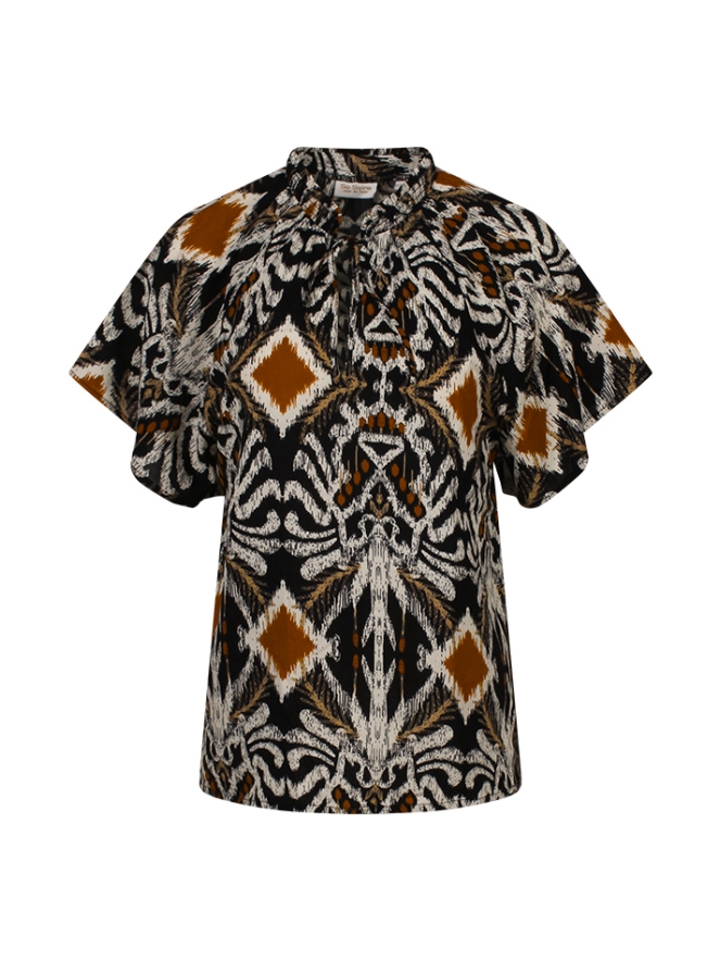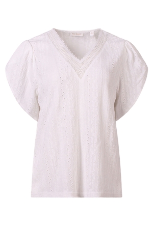 Deze bohemien dames top van So Soire heeft een prachtig, gedetailleerd incadessin dat de perfecte balans tussen stijl en comfort biedt. De V-hals en de vlindermouwen creëren een luchtige, vrouwelijke uitstraling die perfect is voor de zomer. Combineer de top met de bijpassende broek (Z90759) voor een complete, modieuze boho look die je de hele dag kunt dragen.