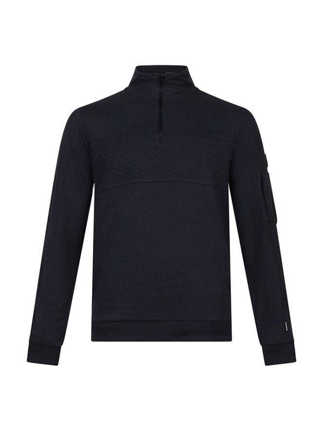 Sweater met korte rits, fijne warme col en een rechte baan voor over de sweater.