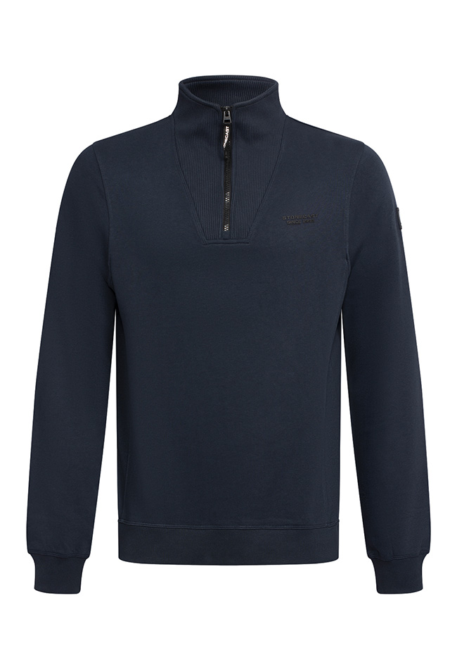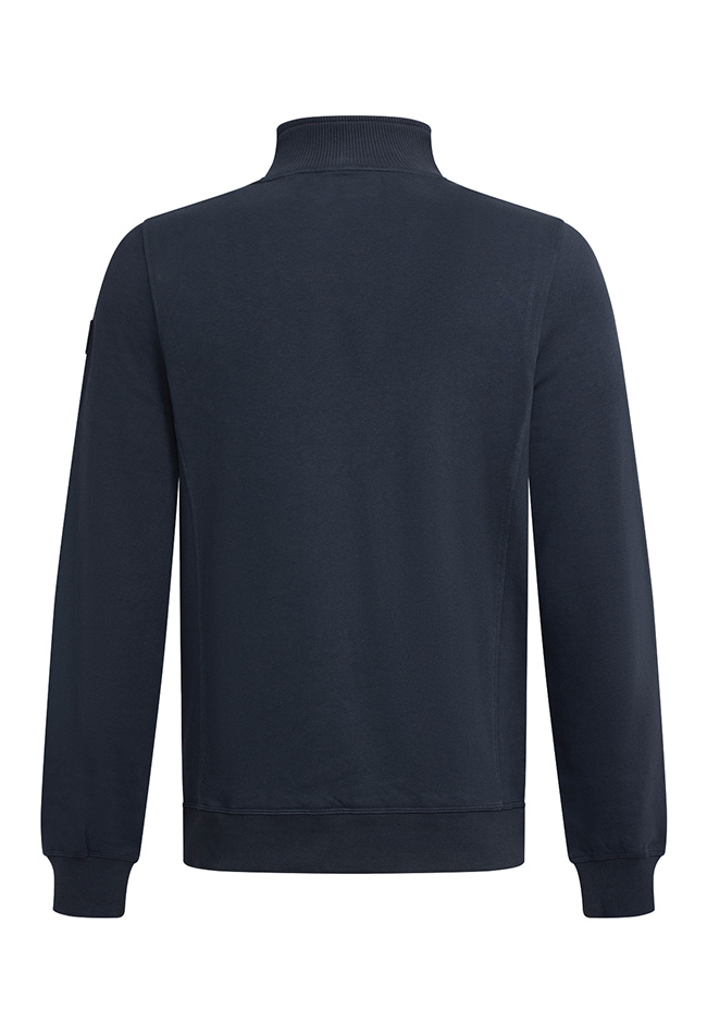 Deze sweater van 100% katoen heeft een korte rits met een fijn sluitende col.