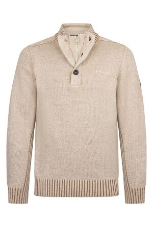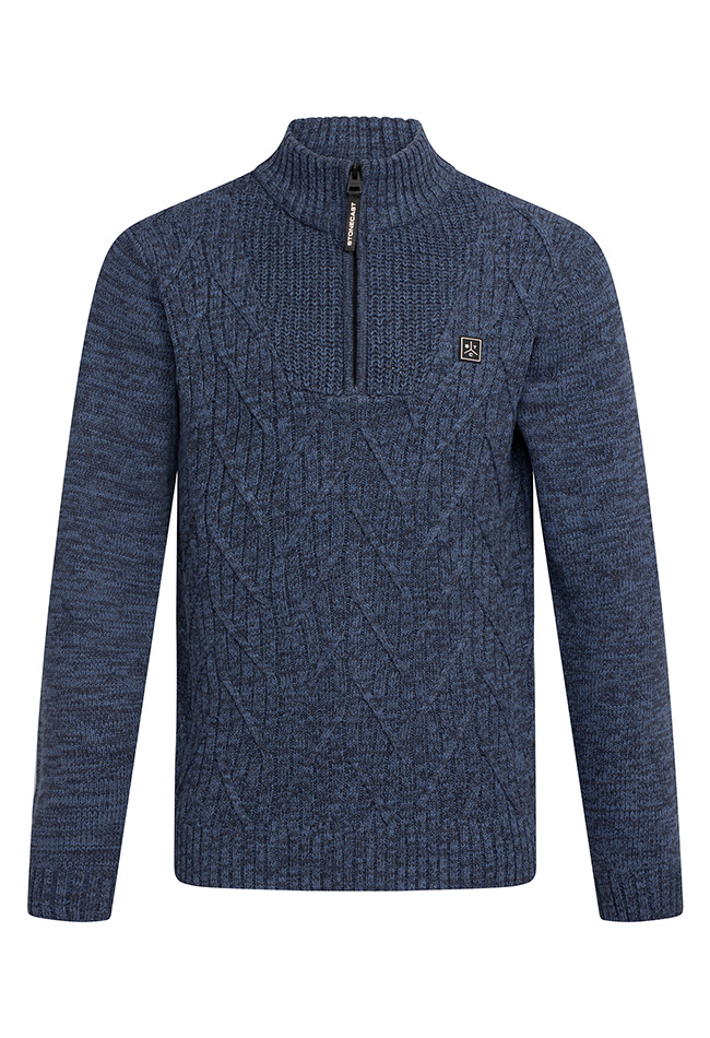 Warme pullover met een kabelpatroon, hoge kraag en een rits.