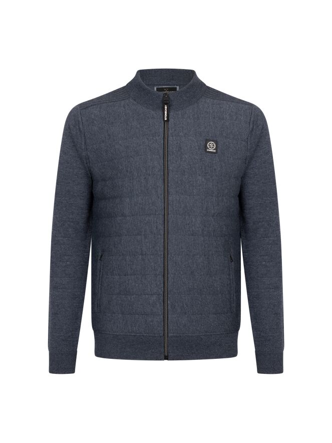 Vlot vest van een fijn gebreide stof met gestepte voorkant en ritszakken.