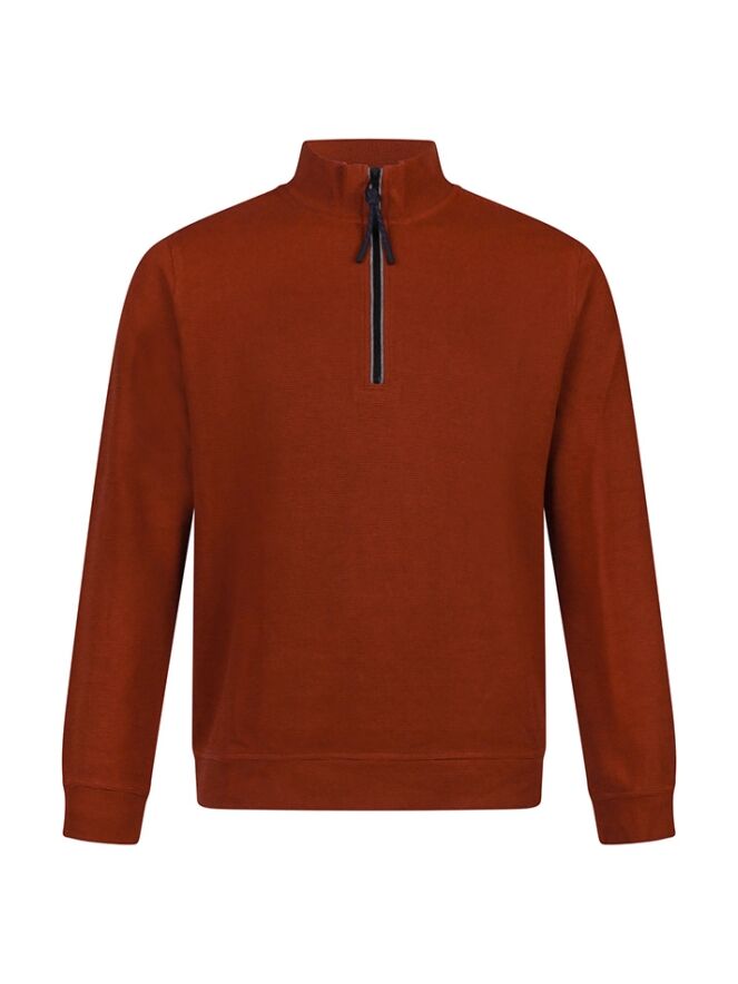 Deze sweater heeft een korte rits met een fijne hoogsluitende kraag.