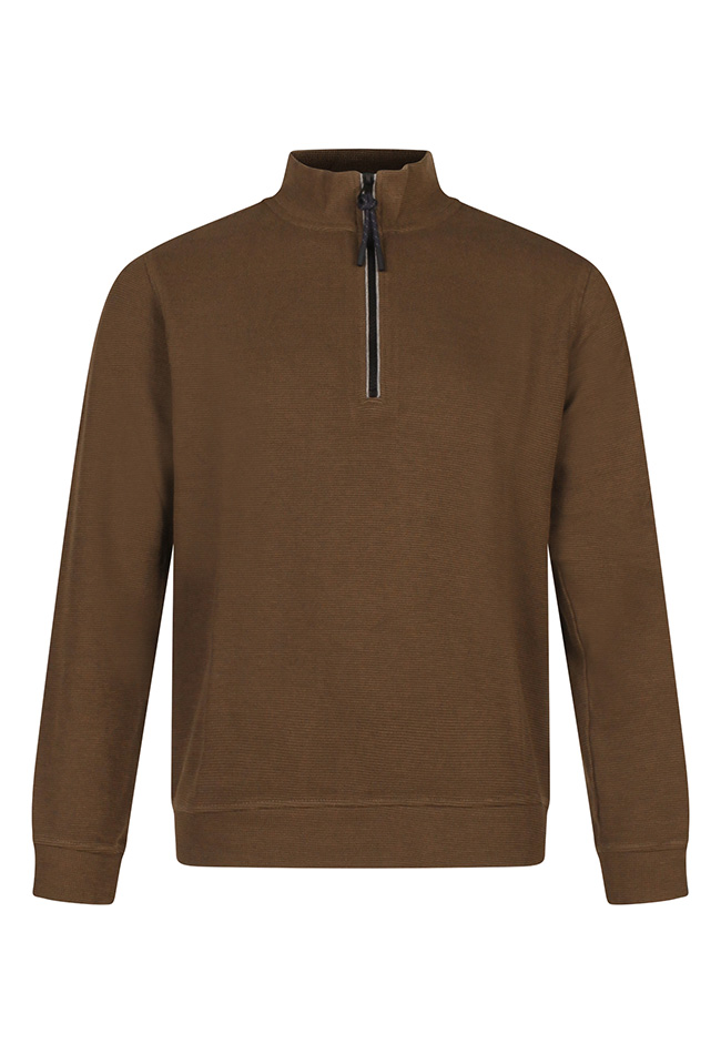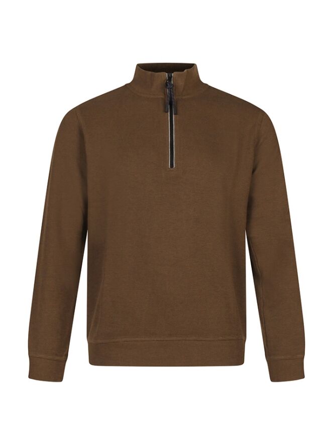 Deze sweater heeft een korte rits met een fijne hoogsluitende kraag.