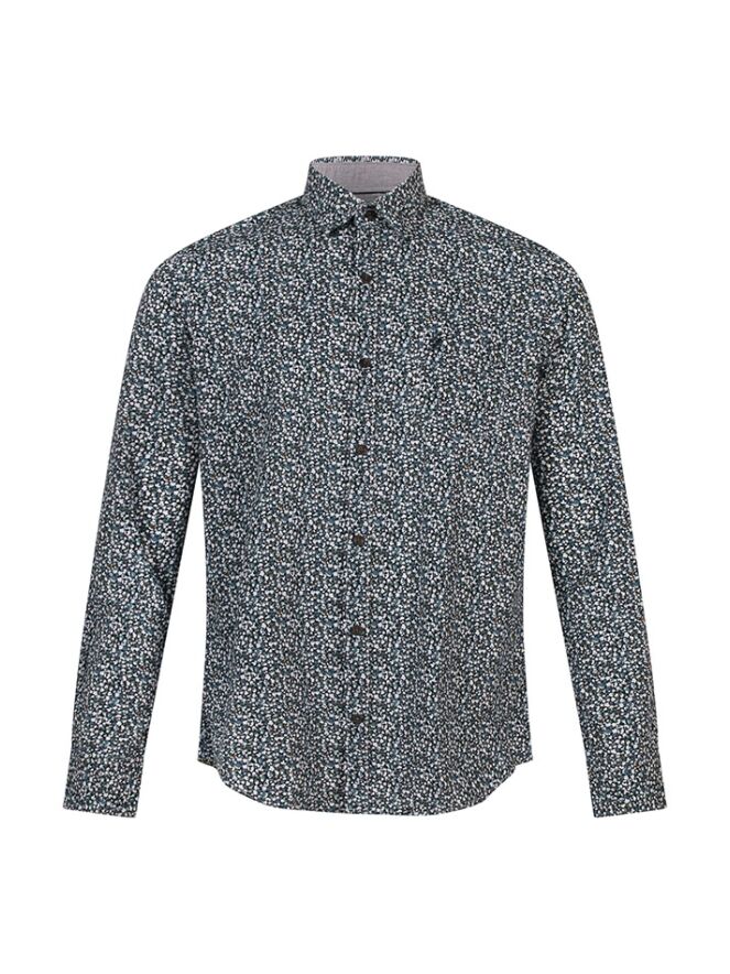 Dit 100% katoenen overhemd heeft een minimalistisch meerkleurig stippen patroon. Regular fit met een borstzakje.